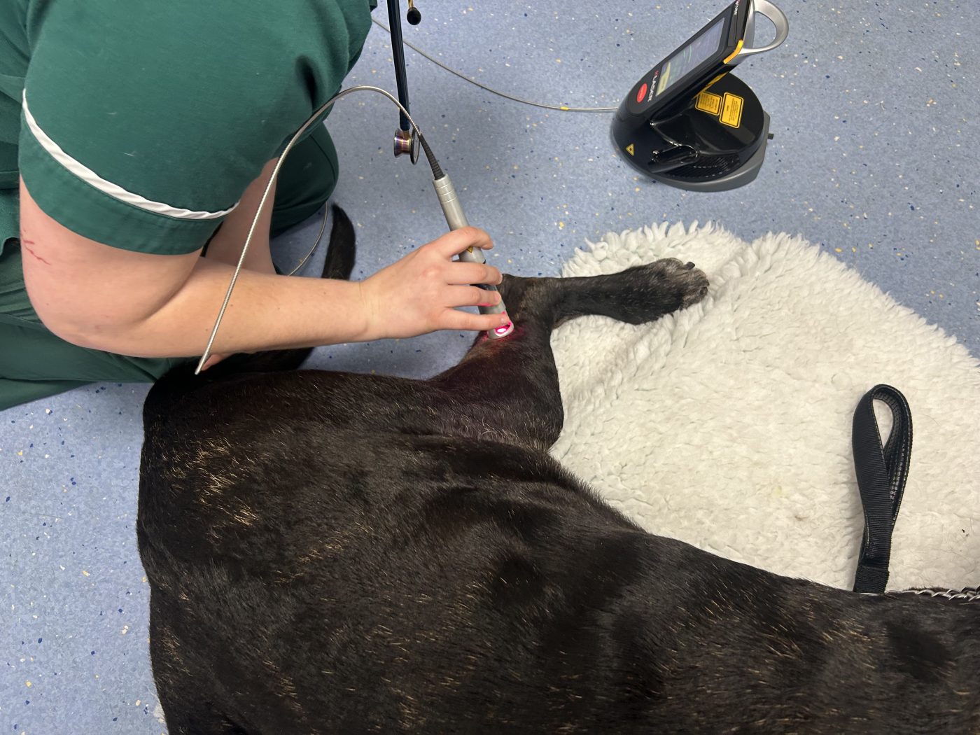 No patient sedation or restraint is required, the treatment is pain free and non-invasive for your pet and is usually a pleasant experience. The pet will often appear relaxed during their session and lay on the bed whilst laser is being performed. Very few side effects have been reported, there is little or no sensation during treatment although some pets may feel mild warmth or tingling.